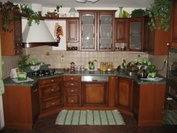 Rustikální kuchyně si lidé často pořizují na chaty a chalupy. Stále častěji je však uvidíme i v rodinných domcích nebo bytech.Dvířka se vyznačují hlubokým ozdobným frézováním a matným patinovým nádechem.Jako úchytky se používají převážně dřevěné knopky popřípadě ozdobné rustikální kování.Obraz starodávna dokresluje tmavá pracovní deska a masivní věncová lišta na vrchních skříňkách.