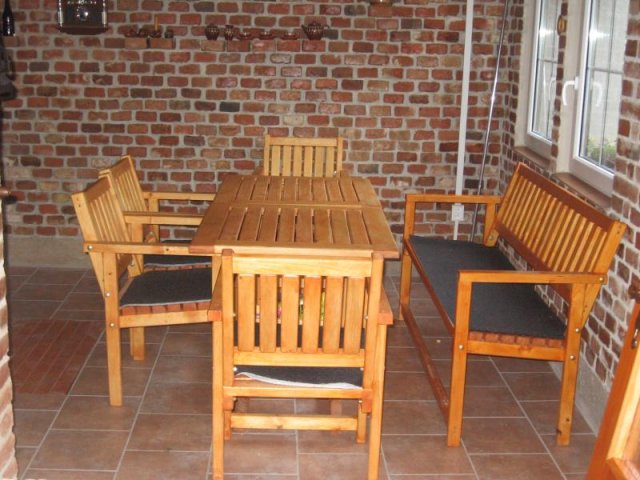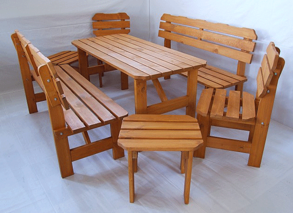 Zahradní masivní nábytek vyrábíme z kvalitního smrkového dřeva, které je hoblované, ofrézované a broušené tak, aby kontakt s ním byl příjemný a hladký. Všechen nábytek je impregnován proti škůdcům a plísním a dle přání natřen vrchní lazurou.