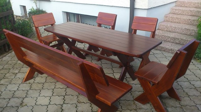 Zahradní masivní nábytek vyrábíme z kvalitního smrkového dřeva, které je hoblované, ofrézované a broušené tak, aby kontakt s ním byl příjemný a hladký. Všechen nábytek je impregnován proti škůdcům a plísním a dle přání natřen vrchní lazurou.